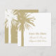 Enregistrez les cartes de mariage de plage de palmiers de sable datant. Modèle de design tropical avec imprimé sur deux côtés. Idéal pour les mariages d'été et de destination.