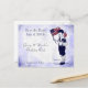 Une carte postale Save the Date avec vintage Americana 4 juillet art avec un garçon patriotique tenant des feux d'artifice rouges et un vieux drapeau américain sur un arrière - plan bleu et blanc imitant texturé Cliquez sur Customiser pour changer les polices, le dimensionnement et plus, même enregistrer votre design pour plus tard.