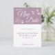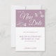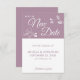 Elégant et romantique floral Enregistrer la nouvelle carte de report mariage date, avec une belle et délicate ligne orchidée blanche dessin en haut, sur un arrière - plan pourpre poussiéreux classe. La partie inférieure est facilement personnalisable en éditant les champs de modèle avec vos noms, date et emplacement dans une police tout-casquette violet moderne et simple sur un arrière - plan blanc simple. Pour plus de personnalisation ou des commandes personnalisées, n'hésitez pas à me contacter à acherryonthecake@hotmail.com (veuillez prévoir 1-2 jours ouvrables). Cette carte Save the Date fait partie de la collection "Delicate Orchids - Dusty Purple mariage suite" avec de nombreux éléments de coordination pour créer une suite de mariage unique.
