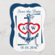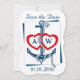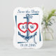 Enregistrez la carte Date avec Ancre, Design nautique en bleu, rouge et blanc. Conception recto verso. Personnalisez à la fois le haut et l'arrière avec vos monogrammes, date, emplacement, noms et autres textes. Design nautique amusant en bleu, rouge et blanc.