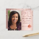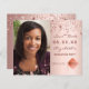 Une photo Enregistrer la date pour une fête de remise de diplômes. Sur le devant : Ajoutez votre propre photo verticale du diplômé. Or rose, couleur arrière - plan rougeâtre, décoré d'étoiles. Personnalisez et ajoutez un nom et une date. Le nom et le texte : Save the Date sont écrits avec un script de style manuscrit moderne.