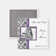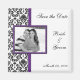 Magnet Réservez la date, avec votre photo sur un élégant arrière - plan damassé noir et violet. Ajoutez votre photo et entrez vos informations dans notre modèle convivial.