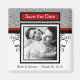 Magnet Réservez la date, avec votre photo sur un élégant arrière - plan de défilement rouge et noir. Ajoutez votre photo et entrez vos informations dans notre modèle convivial.