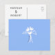 L'avant de cette Save the Date Postcard a trois petites fleurs sucrées sur un arrière - plan périwinkle et l'arrière est un modèle personnalisable que vous pouvez faire votre propre, profiter!