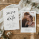Annoncez votre grande journée avec plaisir et style à l'aide de notre Fun Modern minimaliste écriture à la main Style Wedding Enregistrer les cartes de dates avec votre photo sur le dos. Alliant design contemporain et élégance personnalisée, cette carte est dotée d'une police d'écriture ludique et sophistiquée, ajoutant une touche unique et délicieuse aux annonces mariages traditionnelles. En mettant l'accent sur les détails essentiels, vos noms et dates mariages se démarquent magnifiquement dans un décor minimaliste. Conçu à partir de cartons de qualité supérieure, cela sauve aux feuilles de la carte de date une impression durable. Sa texture lisse complète le style chic de l'écriture manuscrite, créant une pièce visuellement attrayante et amusante que vos proches aimeront chérir. Partagez votre enthousiasme et les invitations à marquer leur calendrier pour le jour où vous dites "Je le fais". Laissez cette carte être l'introduction parfaite à la joie et au rire qui vous attendent lors de votre journée spéciale.