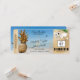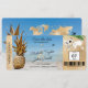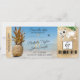 Destination Billet de carte d'embarquement de mariage sur la plage Or Avion Enregistrer la date avec icône de cœur et d'avion avec ananas
