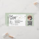 Destination Carte d'embarquement de mariage sur la plage Ticket avion orné de coeur et d'icône d'avion avec une carte du monde simple à ligne minimaliste et couleur de fond vert sauge. Ajoutez votre code QR