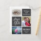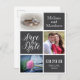 Enregistrez la conception du faire-part de mariage de date, avec le lettrage manuel, et les emplacements pour insérer des images. Les informations d'invitation doivent être personnalisées. Amusant, style mosaïque utilisé.