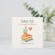 Dites merci avec style et sincérité en utilisant cette carte à plat magnifiquement conçue pour les enseignants. Doté d'une douce aquarelle illustrant des livres empilés, d'un plante vert et d'un coeur rouge, associé au message significatif "Merci pour l'enseignement avec coeur", cette carte est un geste parfait pour exprimer son appréciation. Idéal pour la Semaine d'appréciation des enseignants, les cadeaux de fin d'année, ou tout jour que vous voulez faire sourire un enseignant. Vous pouvez le personnaliser avec le nom de votre enseignant ou ajouter une note personnalisée au dos pour une touche personnelle. Caractéristiques du produit : Carte plate de 5 po x 7 po, impression recto-verso ou recto-verso Carnet ou semi-brillant de haute qualité Personnalisable avec le nom de l’enseignant ou le message personnel Inclut enveloppe correspondante Parfait comme remerciement autonome ou jumelé avec un cadeau Une petite carte avec un grand message - la manière parfaite de dire merci du coeur.