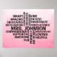 Créez une affiche personnalisée avec un beau nuage de mots d'enseignant sur un arrière - plan rose sombre. Pour customiser le design avec le nom de votre professeur, cliquez simplement sur "Personnaliser ce design" et entrez le nom souhaité. Si vous souhaitez modifier n'importe lequel des mots, vous pouvez facilement les modifier à l'aide de l'outil de conception. Assurez-vous simplement de remplacer un mot par un autre qui a la même longueur. Si vous avez des questions ou désirez un design personnalisé, n’hésitez pas à m’envoyer un message à susan@susannewberrydesigns.com .