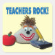 Mignons autocollants avec photo design d'un rocher souriant décoré accompagné d'un carnet en feutre, crayon et pomme, qui dit "Rocher des enseignants !"