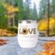 Teach Love Inspire Professeur Sunflower Modern Personnalisé Nom Thermal Wine Tumbler caractéristiques avec le texte "Teach Love Inspire" dans une amusante typographie de script empreinte de léopard moderne et accentué avec un coeur et tournesol et personnalisée avec votre nom personnalisé. Parfait pour l'appréciation des enseignants pour Noël, les anniversaires et les fêtes. Conçu par ©2025 Evco Holidays www.zazzle.com/store/evcoholidays