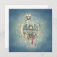Un petit ange mignon et son ami hibou perché sur une lune. Les étoiles scintillantes abondent et un cœur de menthe poivrée pend.
