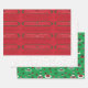 Ensemble de coordination de 3 feuilles de papier d'emballage de Noël, dont 1 de chaque : "We Wish You a Joyeux Noël" Carol, Pots de Neige Multicolor, et Pudding Figgy. Des designs uniques et originaux pour des vacances spéciales !