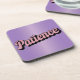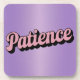 Ce dessous de verre lavande présente un script rose Confirmation de patience. L'affirmation est en écriture rose rétro et inclinée. Le dessous de verre est un dessous de verre en plastique dur avec un support en liège. Il y a six dessous de verre dans l'ensemble.