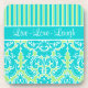 Ce dessous de verre moderne et tendance bleu, vert et blanc à rayures damassées "Live, Love, Laugh" ferait un cadeau idéal pour réchauffer la maison pour la hanche, jeune couple. Customisez-le comme vous voulez !