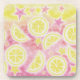 Fruité, fizzy, sucré et aigre... des tranches de citron, de bulles et d'étoiles flottent dans la limonade rose. Ensemble de dessous de verre avec un design personnalisable rose, jaune, orange et blanc pour vous permettre de personnaliser avec votre propre texte, images et idées. Image créée à partir d'un dessin original en crayon coloré et en encre par Jess Perry.