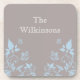 Dessous de verre floral à papillon doux et appétissant Ensemble avec un arrière - plan gris poussiéreux et muet, papillons bleu clair et ornements de vigne fleurie. Cet élégant ensemble de dessous de verre en liège fleuri complèterait n'importe quel décor tout en protégeant vos meubles ! Facile à customiser, ajoutez simplement le texte personnalisé de votre choix dans les champs de texte fournis. Cliquez sur le bouton "Customiser" pour trouver d'autres options de personnalisation.