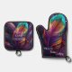 Ensemble De Gant De Cuisine Et De Manique 70s 60s Psychedelic Feathers