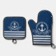 Ensemble De Gant De Cuisine Et De Manique Ancre marine Bleu rayé