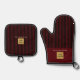 Ensemble De Gant De Cuisine Et De Manique Bande noire et rouge personnalisée