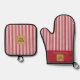 Ensemble De Gant De Cuisine Et De Manique Bande rouge et blanche personnalisée
