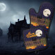 Jeu de porte-pots Halloween amusant | L'ensemble parfait pour habiller votre cuisine pour les vacances. C'est la nuit d'Halloween et les choses qui vont sauter dans la nuit sont à l'ordre du jour ! La sorcière sur son balai et ses trois chauves-souris peut être vue silhouette contre la pleine lune suspendue au bas du ciel nocturne, tandis que ses familles (trois chats noirs assis sur la clôture près d'une maison hantée attendant son retour. Bien sûr, comme c'est Halloween il y a beaucoup de citrouilles et de jack-o-lanternes. Happy Halloween est écrit en orange avec une jolie lueur jaune.