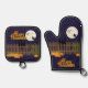Ensemble De Gant De Cuisine Et De Manique Belle Pleine lune nocturne d'Halloween