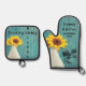 Ensemble De Gant De Cuisine Et De Manique Bleu Bois