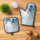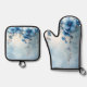 Ensemble De Gant De Cuisine Et De Manique Blue Flowers and Pearls