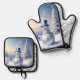 Beautiful Blue Hat Snowman Christmas Tree Oven Mitt & Pot Holder Set