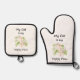 Ce set de porte-pots et Mitt au four présente une illustration charmante qui nous rappelle le bonheur vient souvent des moments les plus simples de la vie, célébrant la joie, le confort et le contentement dans les plaisirs quotidiens.