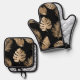 Ensemble De Gant De Cuisine Et De Manique Chic Black Gold Tropical Feuilles