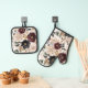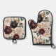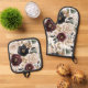 Ensemble De Gant De Cuisine Et De Manique Crème Bourgogne Floral noir