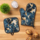 Ensemble De Gant De Cuisine Et De Manique Crème d'or bleu cowhide