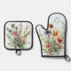Ensemble De Gant De Cuisine Et De Manique Cuisine initiale Monogramme fleur sauvage