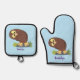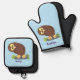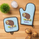 Ensemble De Gant De Cuisine Et De Manique Curieux et drôle dessin animé de chouette brune