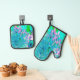 Ensemble De Gant De Cuisine Et De Manique Élégant Limelight rose et bleu Hydrangea