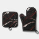 Ensemble De Gant De Cuisine Et De Manique Élégant marbre noir rouge foncé