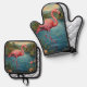 Ensemble De Gant De Cuisine Et De Manique Élégant paradis tropical flamand rose