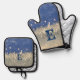 Ensemble De Gant De Cuisine Et De Manique Élégant Parties scintillant Bleue Bokeh Monogramme
