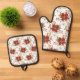 Ensemble De Gant De Cuisine Et De Manique Elegant Winter Poinsettia Floral Pattern
