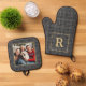 Ensemble De Gant De Cuisine Et De Manique Famille Hiver Gris Plat Personnalisé Monogramme &