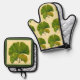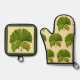 Ensemble De Gant De Cuisine Et De Manique Feuilles Ginkgo