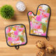 Ensemble De Gant De Cuisine Et De Manique Flamant rose Garden Rose