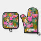 Ensemble De Gant De Cuisine Et De Manique Flamant rose Garden Vert foncé