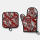 Ensemble De Gant De Cuisine Et De Manique Fleurs grises décoratives