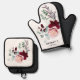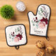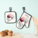 Ensemble De Gant De Cuisine Et De Manique Floral rose et bourgogne