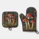 Ensemble De Gant De Cuisine Et De Manique Forêt de champignons rétro
