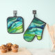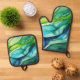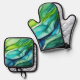 Ensemble De Gant De Cuisine Et De Manique Formes en vert et bleu